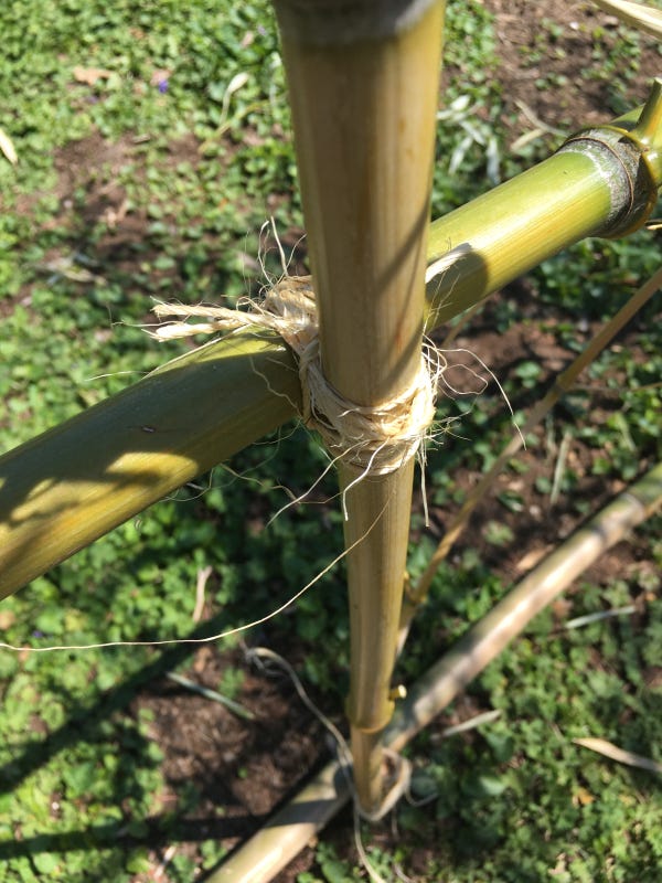 Now, all I had to do was figure out how to build a squash tunnel using bamboo. No biggie, right? Here is what I came up with.