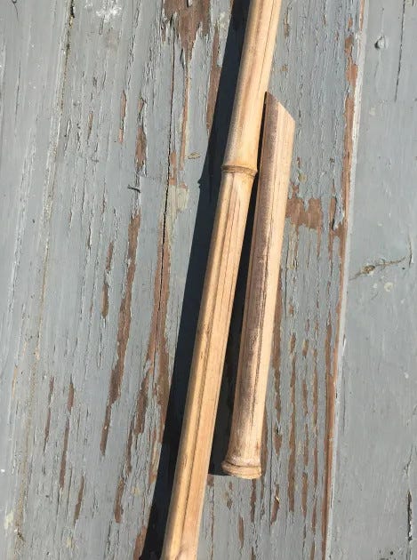 I then cut 6 pieces of bamboo into one-foot lengths, with a sharp 45-degree cut.