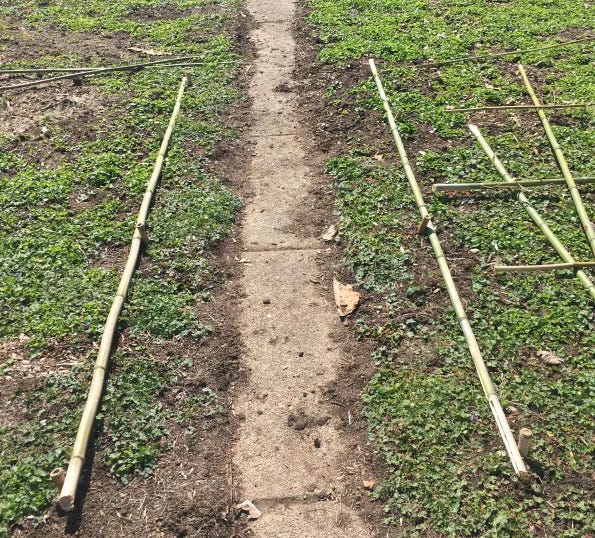 I laid out two bamboo rods that were going to be my base supports to get an idea on the length of the tunnel.